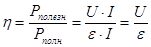 И, наконец, заметим, что коэффициент полезного действия (КПД) источника постоянного тока: