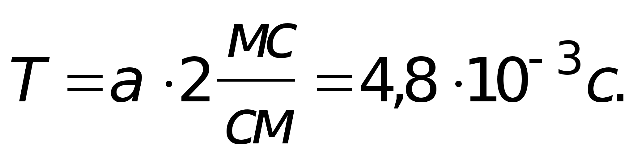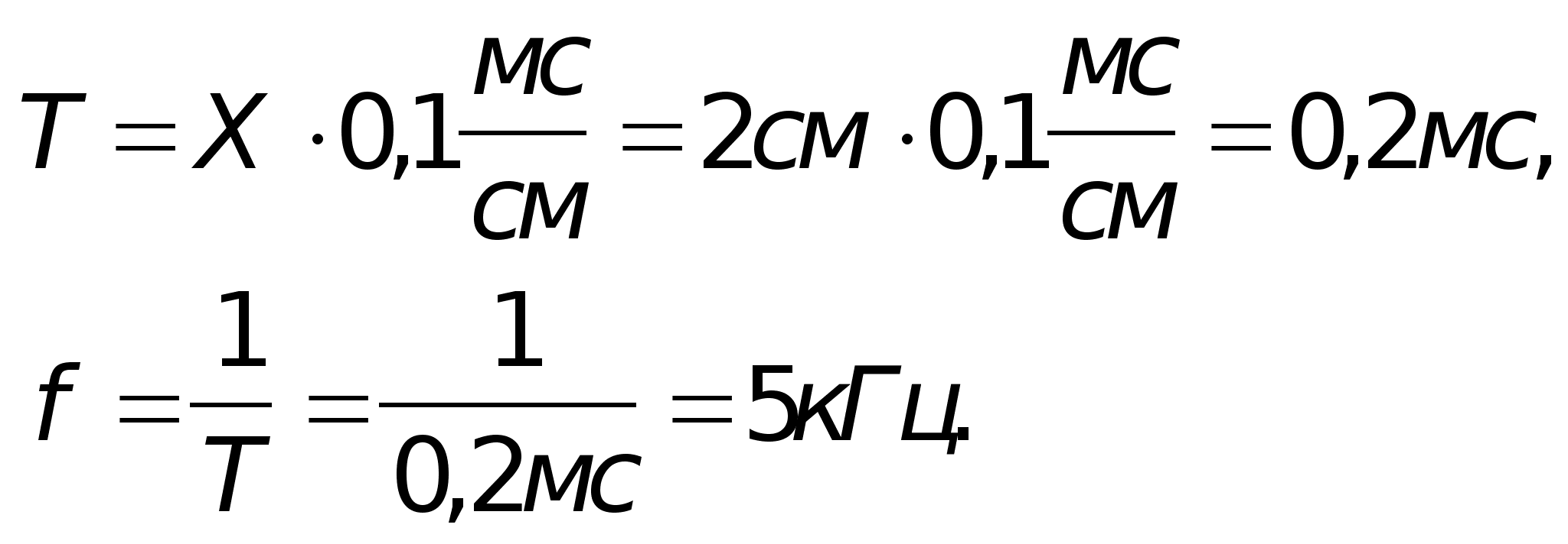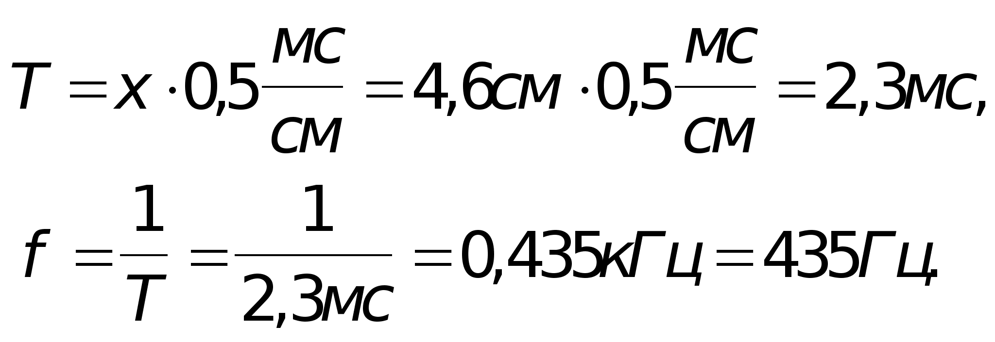 2). Рассчитаем частоту сигнала по показаниям осциллографа: