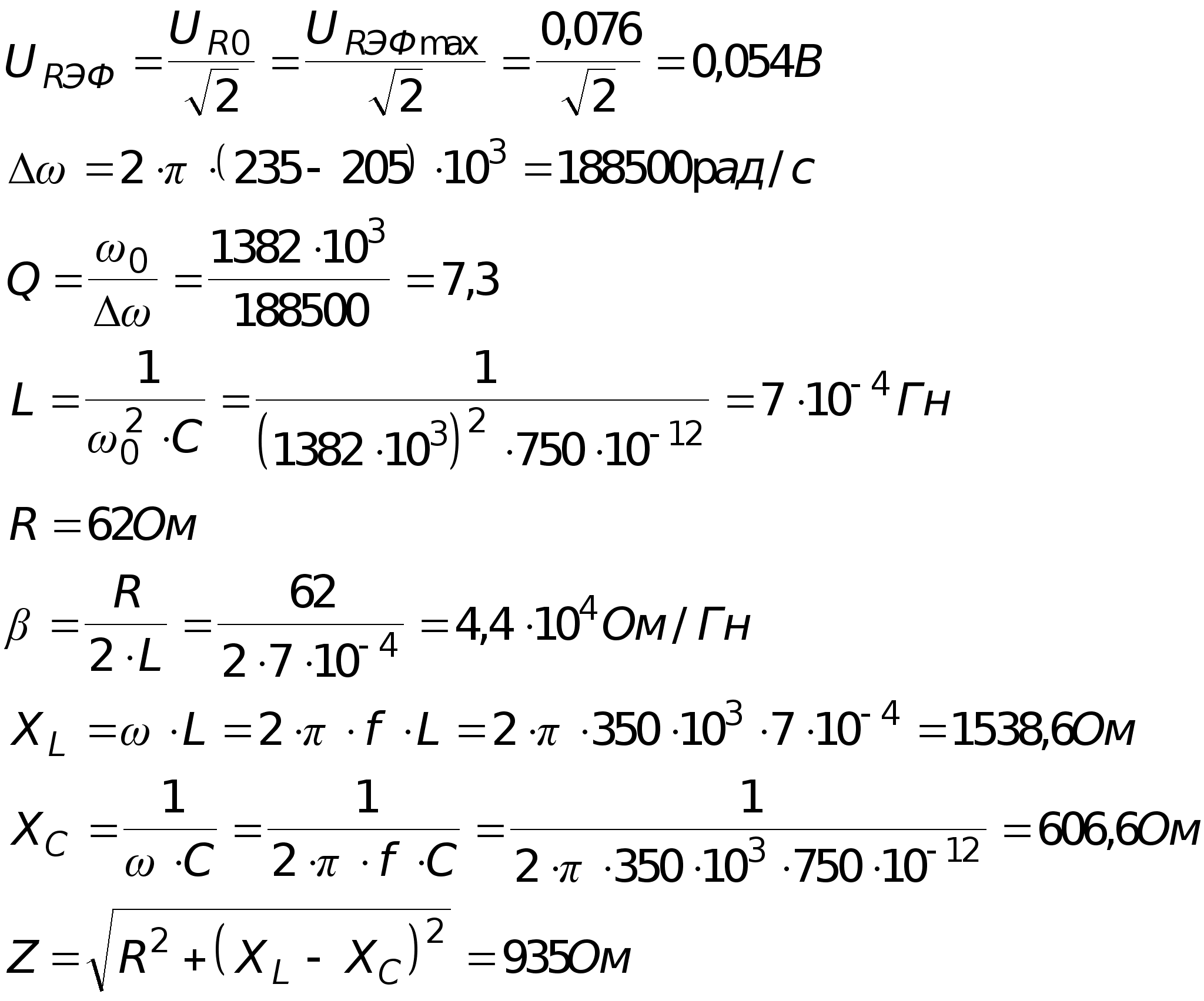 U1= 5В, R=120Ом, f=60 кГц, d=0,002м, r=0,06м, n=18.