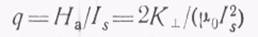 Отношение поля анизотропии к намагниченности насыщения определяет фактор качества магнитоодноосного кристалла: