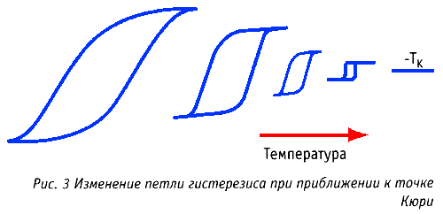 Магнитные свойства ферромагнетиков существенно зависят от температуры. Достаточно точно эта зависимость описывается законом Кюри-Вейса: µ=С/(ТК - Т), где С - некоторая константа (константа Кюри), зависящая от материала, ТК - температура (точка) Кюри. Закон обратной зависимости магнитной восприимчивости парамагнетиков от температуры установлен в 1895 г французским физиком П.Кюри. Позже, в 1907 г другой француз П.Вейс уточнил закон применительно к ферромагнетикам.