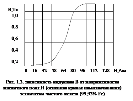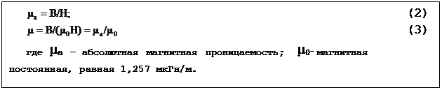 1.3. Магнитная проницаемость. Для характеристики поведения магнитных материалов в поле с напряженностью Н пользуются понятиями абсолютной магнитной проницаемости mа и относительной магнитной проницаемости m0 :