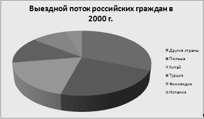Рис.3. Распределение выездного потока российских граждан в страны зарубежья с целью туризма в 2000 г.
