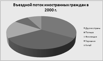 Рис.4. Распределение въездного потока иностранных граждан в Россию с целью туризма в 2000 г.