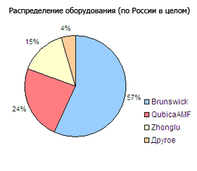 Под оборудованием QubicaAMF подразумевается не только новая продукцию компании, но и оборудование AMF, которое было поставлено в клубы до объединения компании AMF с компанией Qubica. Под другим оборудованием, охватывающем 5% рынка боулинга России, имеется в виду продукция Yangji Vision, Dacos, Modern Technology, Vollner, Switch Bowling и др. |