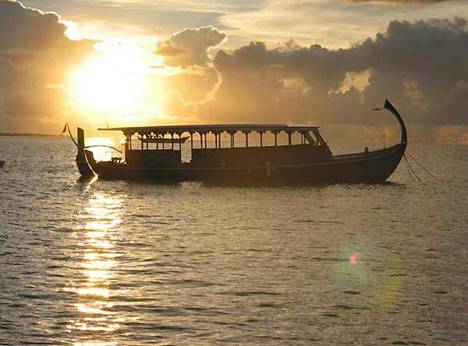 Дхони - традиционное многоцелевое судно, деревянный катер с плоской крышей, в настоящее время усовершенствованное дизельными двигателями. Моторные лодки-дхони удобны только для перемещений на короткие расстояния, главным образом из-за своей тихоходности, их средняя скорость около 10 км/час. Большое количество дхони курсируют в качестве паромов по маршрут Аэропорт - остров Мале (Приложение 4).