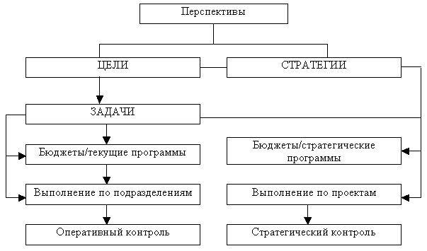На рис. 1.2 представлена схема стратегического планирования, которая демонстрирует, что перспективы и цели связаны между собой для выработки стратегии. Текущие программы (бюджеты) ориентируют оперативные подразделения организации в их повседневной работе, направленной на обеспечение текущей рентабельности, стратегические программы и бюджеты закладывают основы будущей рентабельности, что требует создания специальной системы исполнения, построенной на управлении проектами.