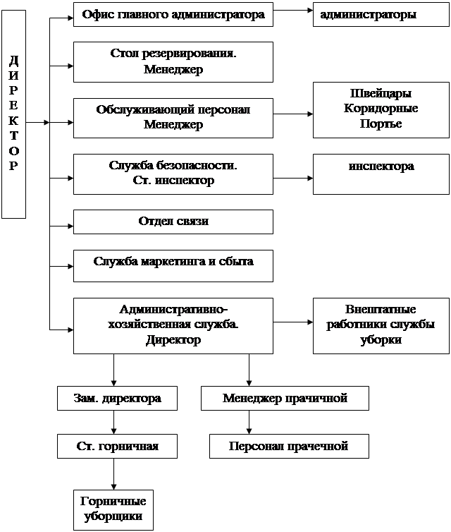 Обслуживающий персонал возглавляет менеджер. Ему подчинены швейцары, портье и коридорные.