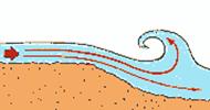 Поток воды, образующийся в центре узости, называется "ЯЗЫК". По сторонам языка образуются зоны обратного тока воды (красные стрелки) называемые "СБОЙКА" |