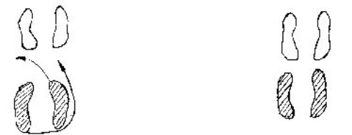 2. операция. Выведения из равновесия. Эта операция делится на две части: поворот туловища и достижение контакта с про тивником, способ приложения сил дл я выведения из равновесия.