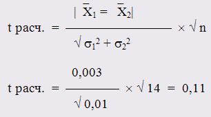 В случае равных объем выборки и неравных дис перс ий, мы имеем формулу t рас четного.