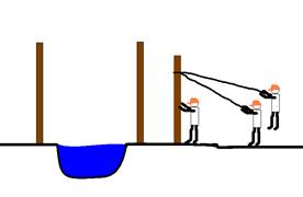 1.4.5 Укладка бревна через овраг с наведением перил