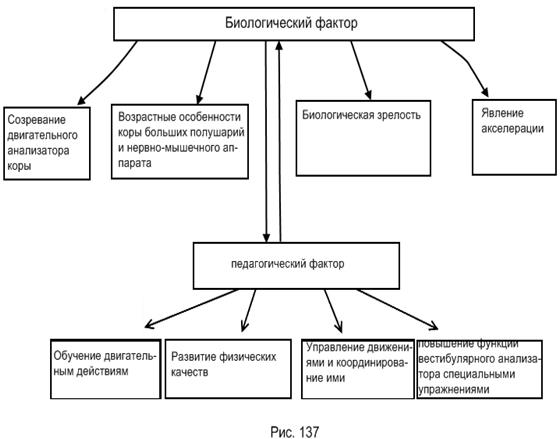 Двигательная функция человека формируется под влиянием биологических и педагогических факторов. Биологический фактор связан с возрастными особенностями детей и подростков, и его влияние на двигательную функцию подчиняется закономерностям возрастного развития.