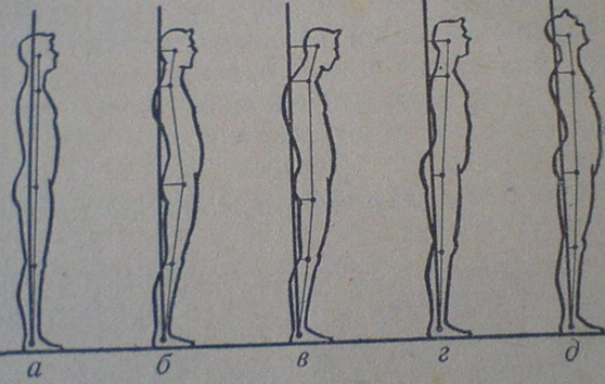 Характерные признаки осанки. Одним из важных характерных признаков осанки является взаимное расположение частей тела (головы, туловища и ног) в сагиттальной плоскости.