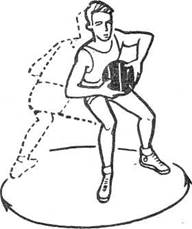 Обводка с изменением скорости. К неожиданным изменениям скорости ведения мяча прибегают для того, чтобы оторваться от защитника. Скорость ведения зависит прежде всего от высоты отскока мяча от площадки и угла, под которым он направляется к площадке. Чем выше отскок и меньше его угол (в рациональных пределах), тем больше скорость продвижения. При отскоке, низком и близком к вертикальному, ведение замедляется и может вообще выполняться на месте.