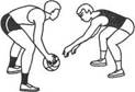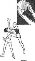 Вырывание мяча. Если защитнику удалось захватить мяч, то прежде всего надо попытаться вырвать его из рук соперника. Для этого нужно захватить мяч возможно глубже двумя руками, а затем резко рвануть к себе, сделав одновременно поворот туловищем. Мяч надо поворачивать вокруг горизонтальной оси, что облегчает преодоление сопротивления соперника.