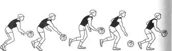 Во всех остальных случаях злоупотреблять ведением не следует, чтобы не снижать быстроту контратак и не нарушать ритма игры. Ведение осуществляется последовательными мягкими толчками мяча одной рукой (или поочередно правой и левой) вниз-вперед несколько в сторону от ступней.