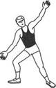 Стойка с выставленной вперед ногой применяется при держании игрока с мячом, когда необходимо помешать ему сделать бросок или пройти под щит. Игрок располагается, как правило, между нападающим и щитом. Одну ногу он выставляет вперед, одноименную руку вытягивает вверх-вперед, предупреждая ожидаемый бросок, а другую руку выставляет в сторону-вниз, чтобы помешать ведению мяча в направлении, наиболее опасном для корзины (рис. 15).