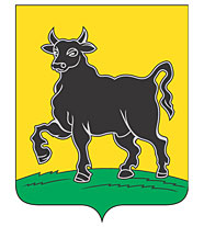 Герб Сызрани, принятый 19 марта 2002 года. В золотом поле на зеленой земле идущий черный бык появился на гербе Сызрани 22 декабря 1780 года. До революции ежегодно в конце лета из калмыцких степей на север двигались большие стада скота. Купленный сызранскими купцами-прасолами калмыцкий скот перепродавался в центральные губернии России. |