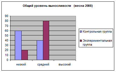 Таблица измерения уровня общей выносливости у контрольной группы (весна 2008)