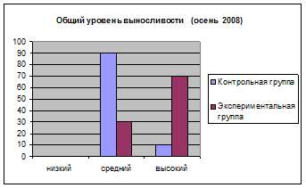 Таблица измерения уровня общей выносливости у экспериментальной группы (осень 2008)