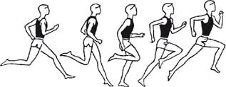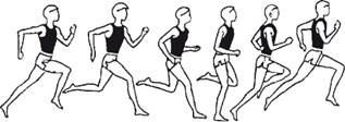 Бедро опорной ноги непрерывно перемещается вокруг оси тазобедренного сустава в направлении, противоположном направлению бега. У подготовленных спринтеров скорость движения бедра значительно выше, чем у начинающих (7,5 мс против 4,8).