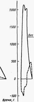 Значительно больше амплитуда вертикальной составляющей динамограммы. При беге она достигает у мастеров спорта 2800Н, а у новичков 1300Н.