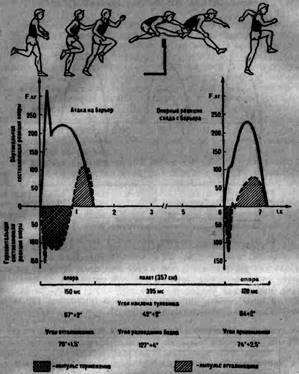 Отдельные кинематические и динамические параметры техники преодоления барьера приведены на рис. 2.