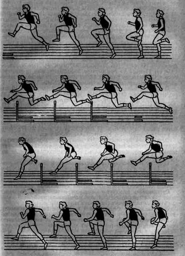 Такие действия барьериста при преодолении препятствия способствуют меньшей потере скорости и создают оптимальные условия для быстрого бега между барьерами.