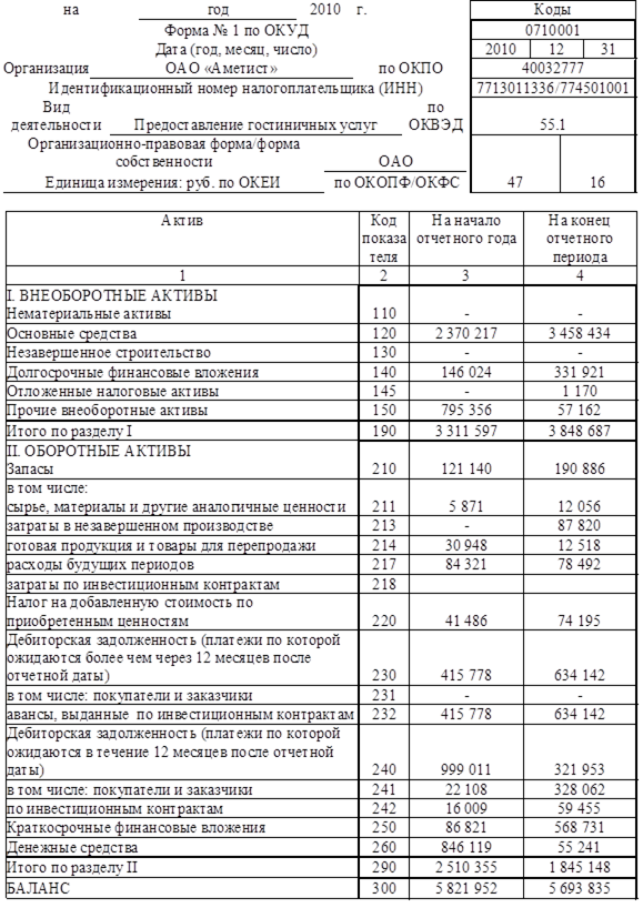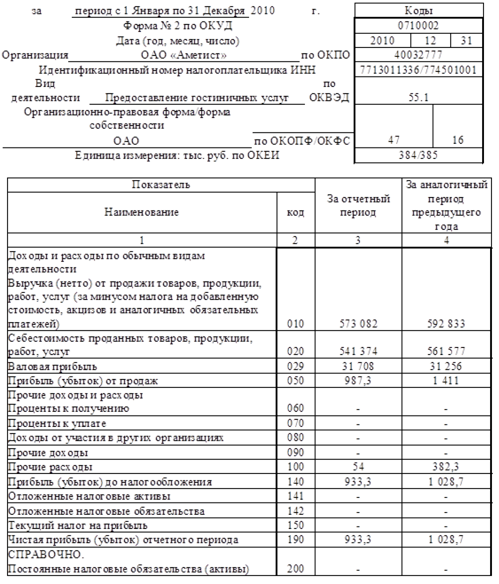 - анализ основных показателей деятельности гостиницы «Аметист»;