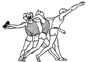 · Имитируется поворачивание тела в направлении броска, и выполняются захват и "натянутый лук" (без броска) - 2 серии по 5 – 6 раз.