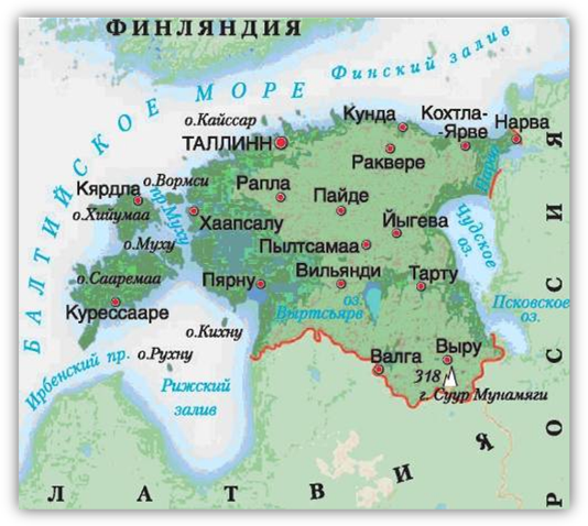 Эстония официальное название - Эстонская Республика государство в северо-восточной части Европы, на южном берегу Финского залива Балтийского моря. Граничит с Латвией на юге и Россией на востоке. На севере омывается Финским заливом, на западе - Рижским заливом Балтийского моря.