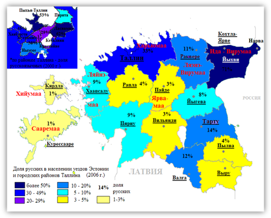 Доля русских, проживающих в Эстонии