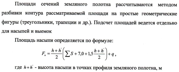 Объем земляных работ между смежными пикетами определяется по формуле