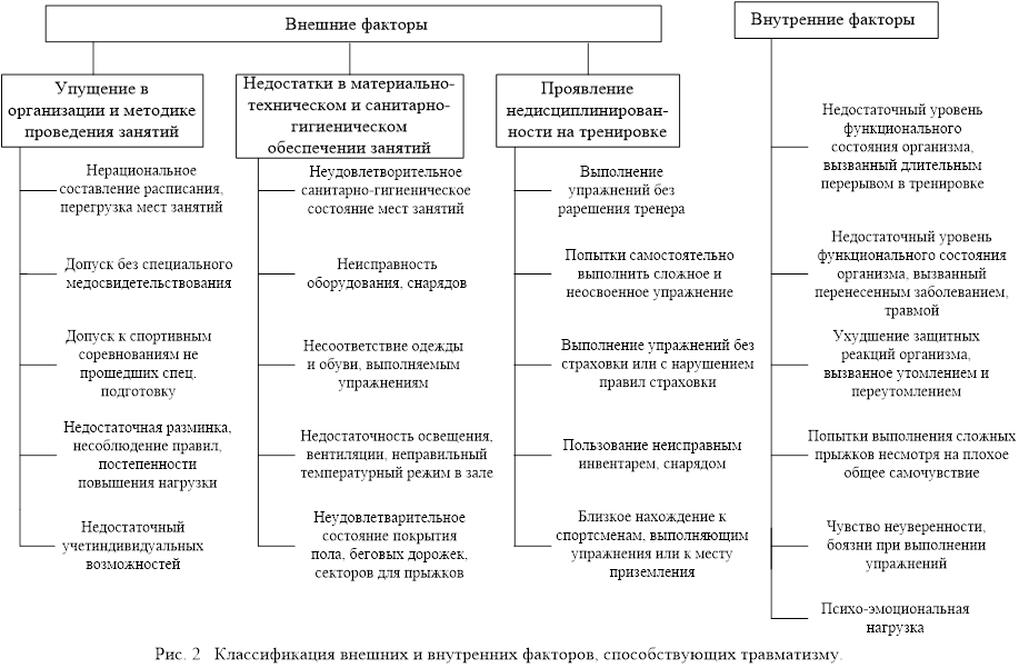 Таким образом, для профилактики спортивного травматизма преподаватели и тренеры должны строго соблюдать правила рациональной методики обучения и тренировки, учитывать индивидуальные особенности занимающихся, обеспечивать необходимую страховку при выполнении упражнений, обучать учащихся правилам страховки, само- и взаимостраховки.