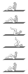 • Во время упражнения пилатес тренируются мышцы брюшного пресса.