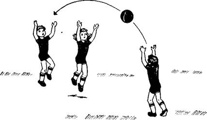 На первых порах при передаче мяча большинство детей старается толкать его обеими руками, широко разводя локти в сторону. В процессе обучения передачи мяча необходимо напоминать детям, что локти следует опустить около туловища; стараться бросать на уровне груди партнера; мяч следует сопровождать взглядом и руками.