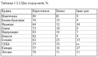 Більша кількість поїздок з метою бізнесу властива тим державам, в яких виїзд в інші країни займає скромніше місце: в США - 33 %, Іспанії - 25 %, Італії - 18 %. Не можна забувати, що в першокласних готелях великих міст головною фігурою залишається бізнесмен. В готелях курортних міст головна фігура - відпочиваючий (хоча серед них, звичайно, зустрічається чимало бізнесменів, проте мета їхнього перебування не бізнес, а відпочинок).