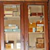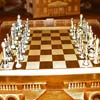 Правую стену комнаты заполнит стационарная мебель, главная функция которой – хранение. Это выполненный из дуба двухсекционный стеллаж для книг и прочей литературы, а также небольшая тумба с настольными играми. Стеллаж предоставляет гостям на выбор: классическую литературу, книги современных авторов, свежие газеты и журналы, тумба же – это кладезь интеллектуальных и развлекательных игр (шашки, нарды и др.). Особого внимания заслуживают шахматы ручной резьбы по красному дереву, которые не только являются экспонатом сигарной комнаты, но ими с удовольствием играют.