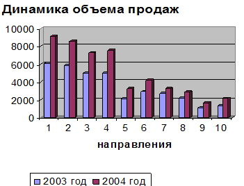 Динамика объема продаж турфирмы «Al Amyal Auto. Spare Parts Tr.» в стоимостных единицах в 2003 - 2004 гг. приведена в табл. 1.