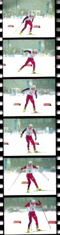 Эти фотографии сделаны на Олимпийских играх в Нагано, во время 15-километровой гонки преследования (См. фото 1-2). Снимки сделаны во время прохождения Бьорном Дали равнинного участка по лыжному стадиону. Норвежец проходит по стадиону так называемым "диагональным" коньковым ходом, толкаясь одновременно двумя руками только под левую ногу. Особенно показателен второй кадр.