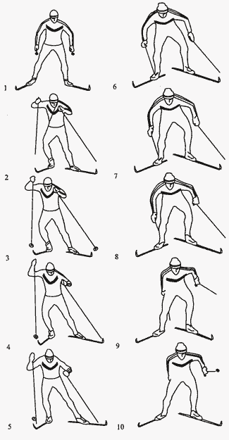 - цикл хода - это один коньковый шаг и один одновременный толчок руками;