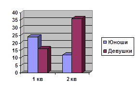 Как показано на гистограмме 1, юноши-спортсмены более ориентированы на успех в спорте, чем девушки. Это обнаруживается по многим признакам. Они более озабочены завоеванием авторитета среди соперников. У мужчин стремление к мотивации достижения проявляется у 24%, у девушек этот показатель: 16%. Касательно мотивации избегания неудач: юноши-12%, девушки-36%. В результате исследований можно сделать вывод, что для спортсменов-мужчин более характерна ориентация на достижение победы, тогда как женщины-спортсменки в большей степени стремятся к улучшению собственных результатов.