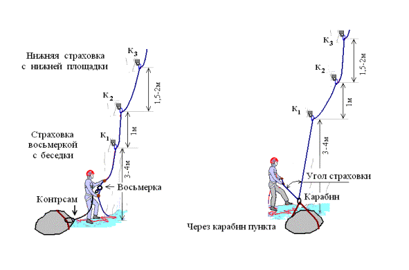 Рис.5 Базовый пункт страховки. Рис.6 Промежуточные точки страховки.