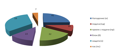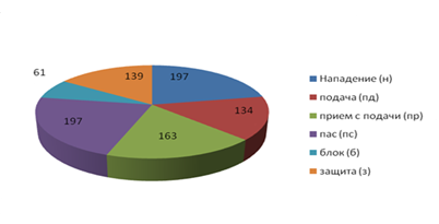 В волейболе различные действия в соревновательных условиях выполняются не одинаково часто и в различной степени влияют на итог игры. Следовательно, необходимо учитывать не только качество выполнения отдельных действий, но и частоту их повторения в игре. Введение этих понятий в оценку технико-тактических действий волейболистов позволяет наиболее объективно судить о мастерстве команды или игрока и вносить соответствующие коррективы в учебно-тренировочный и соревновательный процессы [14].