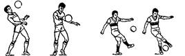 Рис. 3. Удар по м'ячу головою (серединою чола): а – без стрибка; б – у стрибку