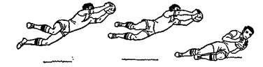 У підготовці воротарів значна увага варто приділити навчанню ловінню м'яча в падінні. Після ознайомлення з технікою падіння «перекатом» у сторони розучується техніка ловіння м'ячів, що котяться і низько летять, на відстані 1,5–2 м від воротаря. Для освоєння ловіння м'яча в падінні з фазою польоту на початку навчання використовуються вправи, спрямовані на освоєння всіх компонентів складної структури падіння (переміщення, відштовхування, ловіння м'яча у фазі польоту, приземлення). Потім ідут завдання піймати м'ячі, що котяться і летять з різною траєкторією на відстані 2–2,5 м від воротаря.