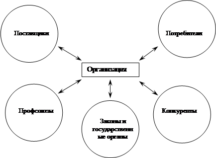 Среду прямого воздействия еще называют непосредственным деловым окружением организации. Это окружение формирует такие субъекты среды, которые непосредственно влияют на деятельность конкретной организации: потребители, партнеры и поставщики, Законы и государственные органы, конкуренты.