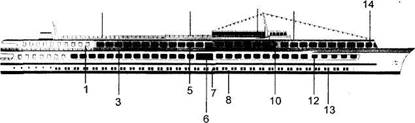 ♦ функциональные возможности каждой каюты и условия комфортности, обусловленные расположением кают на той или иной палубе и местоположением ее на самих палубах;