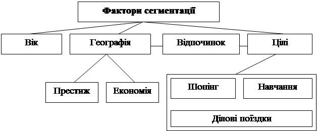 Мал. 1.1. Сегментація ринку міжнародного туризму.